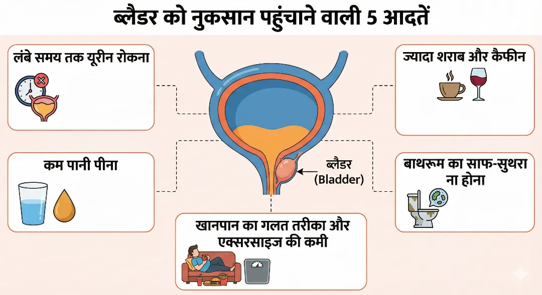 ऐसी लापरवाही कई बार यूरीनरी ट्रैक्ट इंफेक्शन, इन्कॉन्टिनेस (अपने आप यूरीन निकल जाना) और कैंसर तक का कारण बन सकती है। रोजमर्रा की ऐसी कौन-सी आदतें हैं, जो ब्लैडर को नुकसान पहुंचा सकती हैं, आइए उनके बारे में जानते हैं।