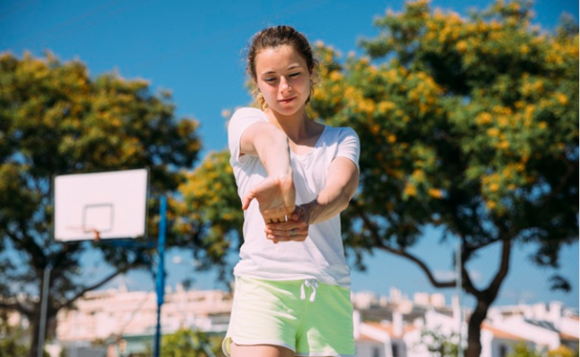अपनी दोनों कलाईयों को नीचे की ओर खींचे