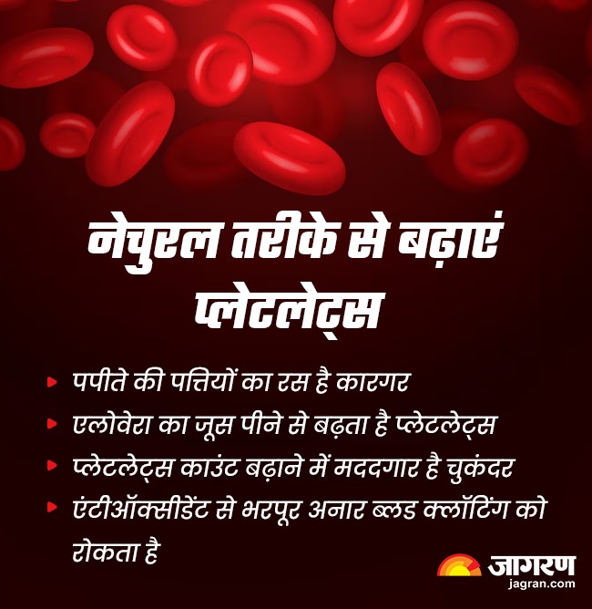 इन दिनों देश के कई हिस्सो में मच्छरों से होने वाली बीमारी डेंगू, मलेरिया का कहर जारी है। डेंगू के शुरुआती लक्षण वायरल बुखार जैसे होते हैं, लेकिन बाद में मरीज की हालत गंभीर होने लगती है। डेंगू या मलेरिया बुखार में प्लेटलेट्स तेजी से कम होते हैं। जो मरीज के लिए खतरनाक स्थिति हो सकती है। इस आर्टिकल में आपको कुछ असरदार प्राकृतिक उपचार बताएंगे, जिनकी मदद से प्लेटलेट्स तेजी से बढ़ा सकते हैं।