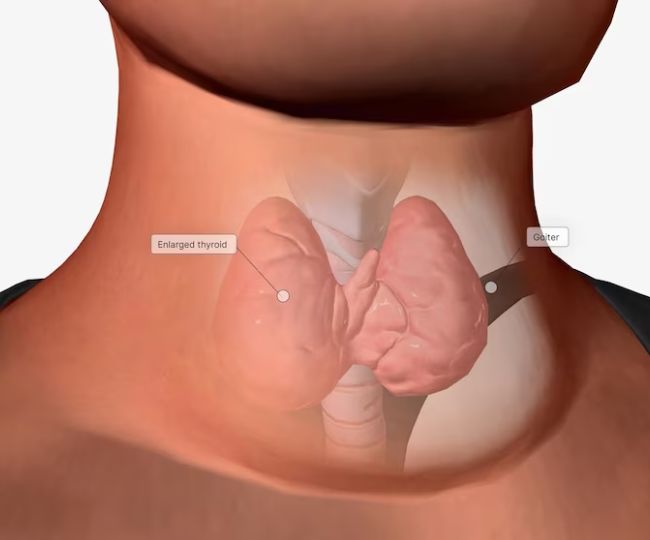 आयोडीन की कमी की वजह से गोइटर की समस्या हो सकती है। इसमें गर्दन में सूजन या लंप बन जाता है, जो थायरॉइड ग्लैंड में सूजन की वजह से होने लगता है। इसमें पूरा थायरॉइड ग्लैंड बड़ा हो सकता है या किसी एक तरफ का साइज बड़ा होना शुरू हो जाता है। इस कारण से गले में टाइटनेस का एहसास, बोलने में तकलीफ जैसी समस्याएं हो सकती हैं।