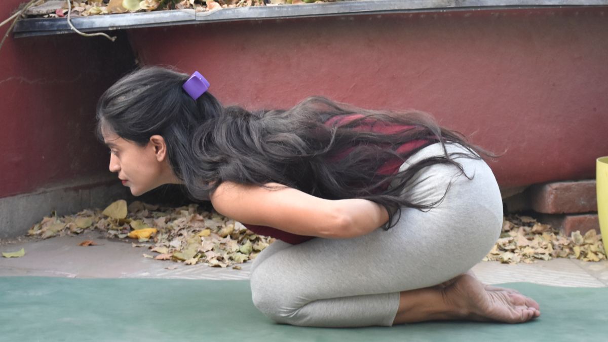 - दोनों पैरों को जोड़कर बैठ जाएंं।