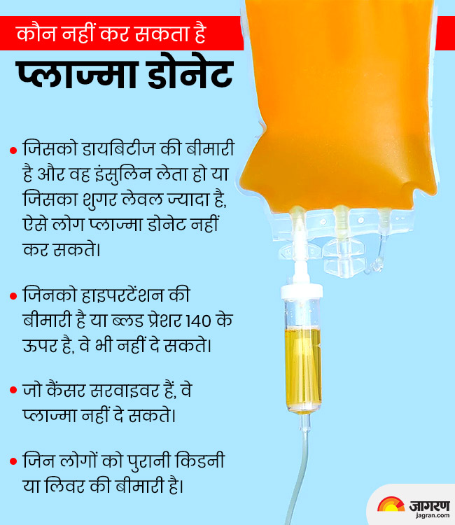 डॉक्टरों का कहना है कि जिन मरीजों को प्लाज्मा दिया जा सकता है, उनके लिए भी दिशा-निर्देश हैं। सामान्य तौर पर वायरस से गंभीर रूप से प्रभावित और श्वसन के संक्रमण से पीड़ित मरीजों को प्लाज्मा दिया जा सकता है।