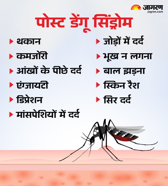 इस बारे में डॉ. मोहन कुमार सिंह (मैरिंगो एशिया हॉस्पिटल, गुरुग्राम में इंटरनल मेडिसिन- सीनियर कंसलटेंट) बताते हैं कि डेंगू से रिकवरी के दौरान भी कुछ लक्षण शरीर में बरकरार रहते हैं, जिन्हें पोस्ट डेंगू सिंड्रोम (Post-Dengue Syndrome) कहा जाता है। डेंगू ठीक होने के कुछ हफ्ते बाद तक मरीज को कमजोरी और थकान महसूस हो सकती है। साथ ही, जोड़ों और मांसपेशियों में दर्द की समस्या भी हो सकती है, जिसके कारण चलने-फिरने में दिक्कत का सामना करना पड़ सकता है। इसके अलावा, आंखों के पीछे दर्द और सिर दर्द की समस्या भी हो सकती है।