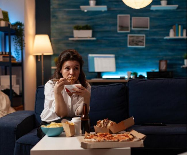 आधी रात में उठकर कुछ खाने की क्रेविंग हो या फिर देर रात से डिनर करने की आदत। यह आपको जल्द से जल्द मोटापे का शिकार बना सकती है। ऐसे में, एक्सरसाइज और डाइट का भी कोई फायदा नहीं होता है और वजन बढ़ता ही जाता है। बता दें, देर रात खाना खाने से मेटाबॉलिज्म स्लो हो जाता है, इसलिए ऐसा करने से जितना हो सके उतना बचें।