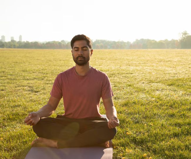 - रीढ़ की हड्डी सीधी रखें और सांसों पर ध्यान केंद्रित करें