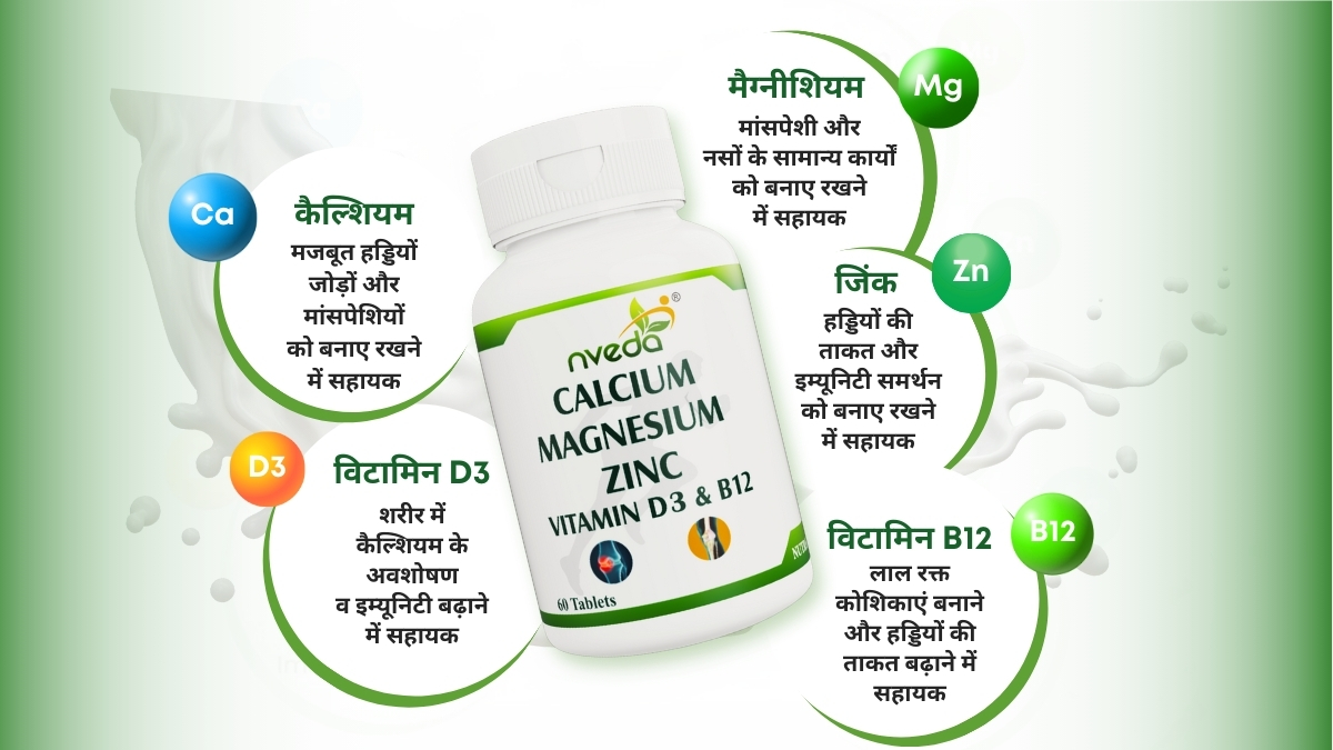 आपकी इस समस्या को Nveda ने भलीभांति समझा है। इसका मल्टीविटामिन Nveda Calcium Complex न केवल कैल्शियम की कमी को दूर करेगा, बल्कि यह मैग्नीशियम, जिंक, विटामिन डी3 और विटामिन बी12 की भी आपको फायदा पहुंचाएगा। यह आपकी हड्डियों और जोड़ों को मजबूत बनाएगा, साथ ही इम्यूनिटी और एनर्जी को बूस्ट करेगा। यह मल्टीविटामिन Nveda की वेबसाइट पर उचित मूल्य पर उपलब्ध है।