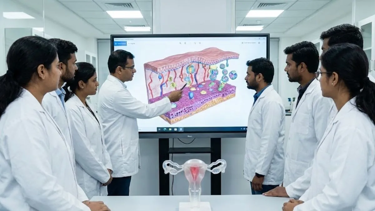 भ्रूण के प्रत्यारोपण का अध्ययन करने को एंडोमेट्रियम की प्रति बनाई (Image Source: AI-Generated)
