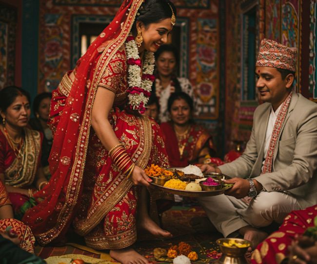 भारत विविधताओं से भरा देश है जहां हर राज्य गांव और समुदाय की अपनी-अपनी संस्कृति और परंपराएं हैं। कुछ परंपराएं हमें गौरव से भर देती हैं तो कुछ ऐसी भी होती हैं जिन्हें जानकर हम चौंक उठते हैं। ऐसी ही एक अनोखी परंपरा देखने को मिलती है थारू जनजाति में जहां एक नई दुल्हन अपने पति को खाना हाथ से नहीं बल्कि पैर से परोसती है (Tharu Tribe Wedding Ritual)।