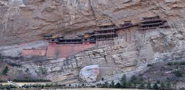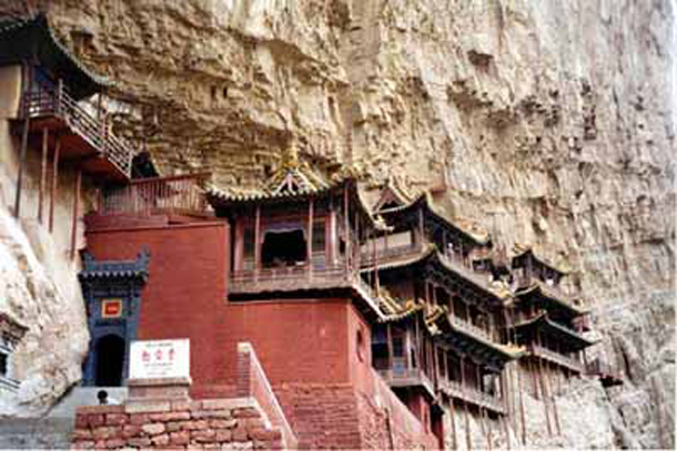 यह सर्वविदित है कि मंदिर और मठ आम तौर पर जमीन पर बनाये गए हैं , लेकिन उत्तर चीन के शानसी प्रांत में एक ऐसा मंदिर देखने को मिलता है , जो सीधी खड़ी पहाड़ी चट्टार पर बनाया गया है और दूर से देखने में लगता है , मानो वह हवा में अटका हुआ मंदिर हो । इसलिए यह मंदिर हवा में खड़े मंदिर के नाम से चीन भर में मशहूर है । हवा में खड़ा यह मंदिर शानसी प्रांत के ताथुंग शहर के निकट स्थित है , जिस का निर्माण आज से 1400 साल पहले हुआ था । वह चीन में अब तक सुरक्षित एकमात्र बौध , ताऔ और कम्फ्युसेस त्रिधर्मों की मिश्रित शैली में निर्मित अनोखा मंदिर है ।