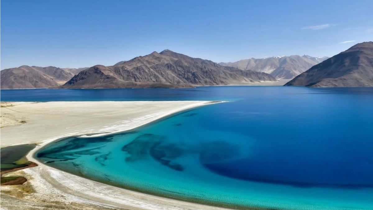 पैंगोंग झील लद्दाख की सबसे खूबसूरत झीलों में से एक है, जो भारत और चीन की सीमा पर स्थित है। इस झील का नीला पानी और उसमें दिखती पहाड़ों की परछाई पर्यटकों को मंत्रमुग्ध कर देती है। यह झील लगभग 134 किमी लंबी है और इसका कुछ हिस्सा चीन में भी पड़ता है। यहां का सूर्योदय और सूर्यास्त का नजारा बड़ा ही अनोखा होता है।