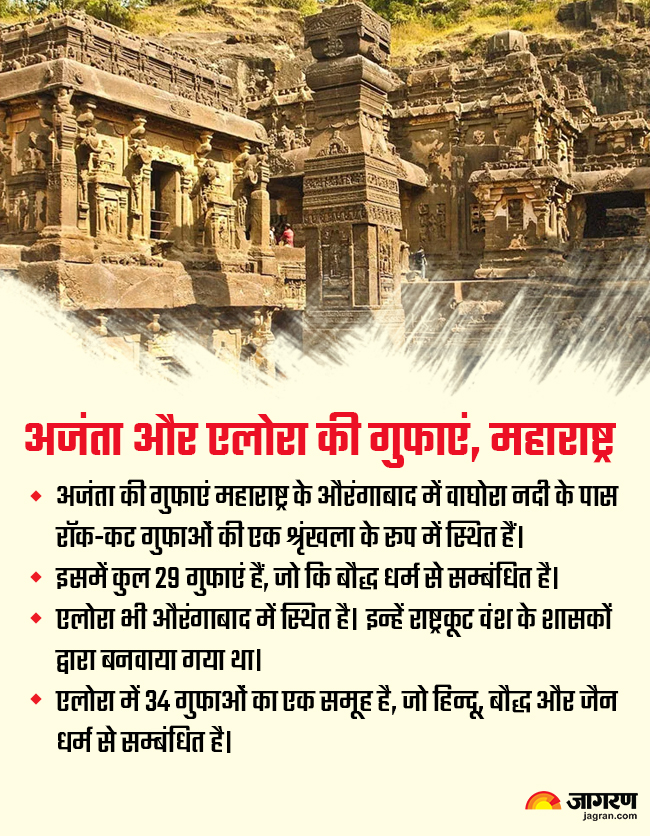 महाराष्ट्र के औरंगाबाद में स्थित अजंता-एलोरा की गुफाएं भी भारत के मशहूर पर्यटन स्थलों में से एक हैं। इसे देखने हर साल भारी संख्या में पर्यटक यहां पहुंचते हैं। यह घोड़े के नाल के आकार वाले पहाड़ पर बनी 29 गुफाएं हैं। यूनेस्को द्वारा इन गुफाओं को साल 1983 में विश्व धरोहर स्थलों में शामिल किया गया था।