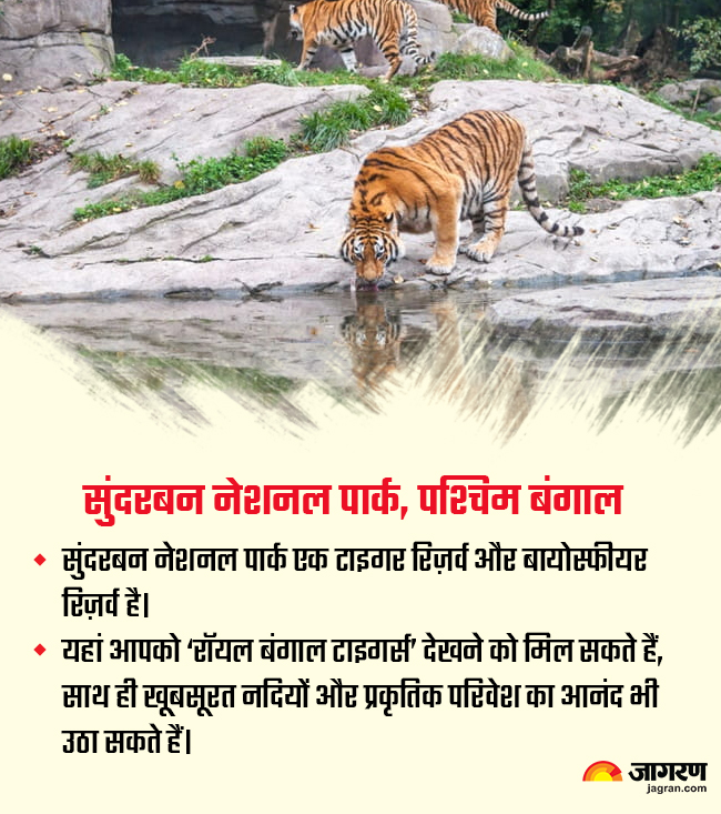 सुंदरबन नेशनल पार्क एक टाइगर रिज़र्व और एक बायोस्फीयर रिज़र्व है। यहां आपको ‘रॉयल बंगाल टाइगर्स’ देखने को मिल सकते हैं, साथ ही खूबसूरत नदियों और प्रकृतिक परिवेश का आनंद भी उठा सकते हैं।