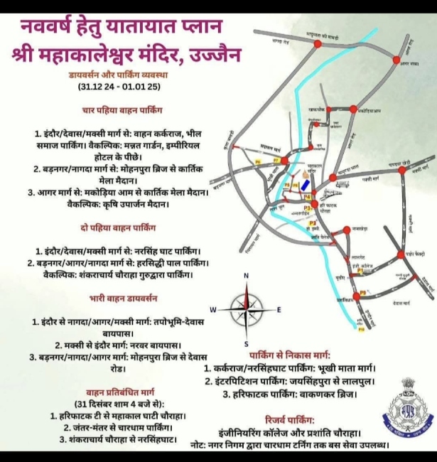 2. बड़नगर /आगर/नागदा मार्ग से हरसिद्धी पाल पार्किंग। वैकल्पिक शंकराचार्य चौराहा गुरुद्वारा पार्किंग।