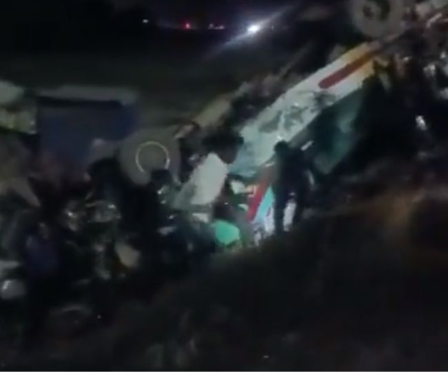 इसी दौरान पीछे से सीमेंट से भरा एक बल्कर आया और एक-एक कर तीन बसों को जोरदार टक्कर मार दी। टक्कर लगते ही दो बसें करीब 10 फीट गहरी खाई में गिर गईं और एक बस के परखच्चे उड़ गए। इस दुर्घटना में एक कार और बाइक भी चपेट में आ गई। भीषण हादसे के बाद मौके पर चीख-पुकार मच गई।