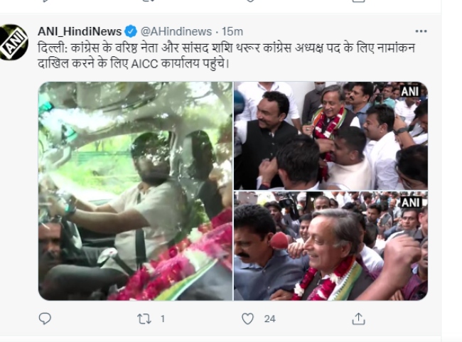 जानकारी हो कि कांग्रेस के वरिष्ठ नेता और सांसद शशि थरूर कांग्रेस अध्यक्ष पद के लिए नामांकन दाखिल करने के लिए दिल्ली AICC कार्यालय पहुंचे हैं । वहीं, दूसरी और राजस्थान के मुख्यमंत्री अशोक गहलोत कांग्रेस सांसद मल्लिकार्जुन खड़गे के आवास पहुंचे। उन्होंने कहा कि हमारे वरिष्ठ नेताओं ने मिलकर खड़गे जी के नामांकन (कांग्रेस अध्यक्ष पद के लिए) के संबंध में निर्णय लिया है, मैं उनके लिए प्रस्तावक बनूंगा। हम कांग्रेस को मजबूत करने की कोशिश कर रहे हैं।