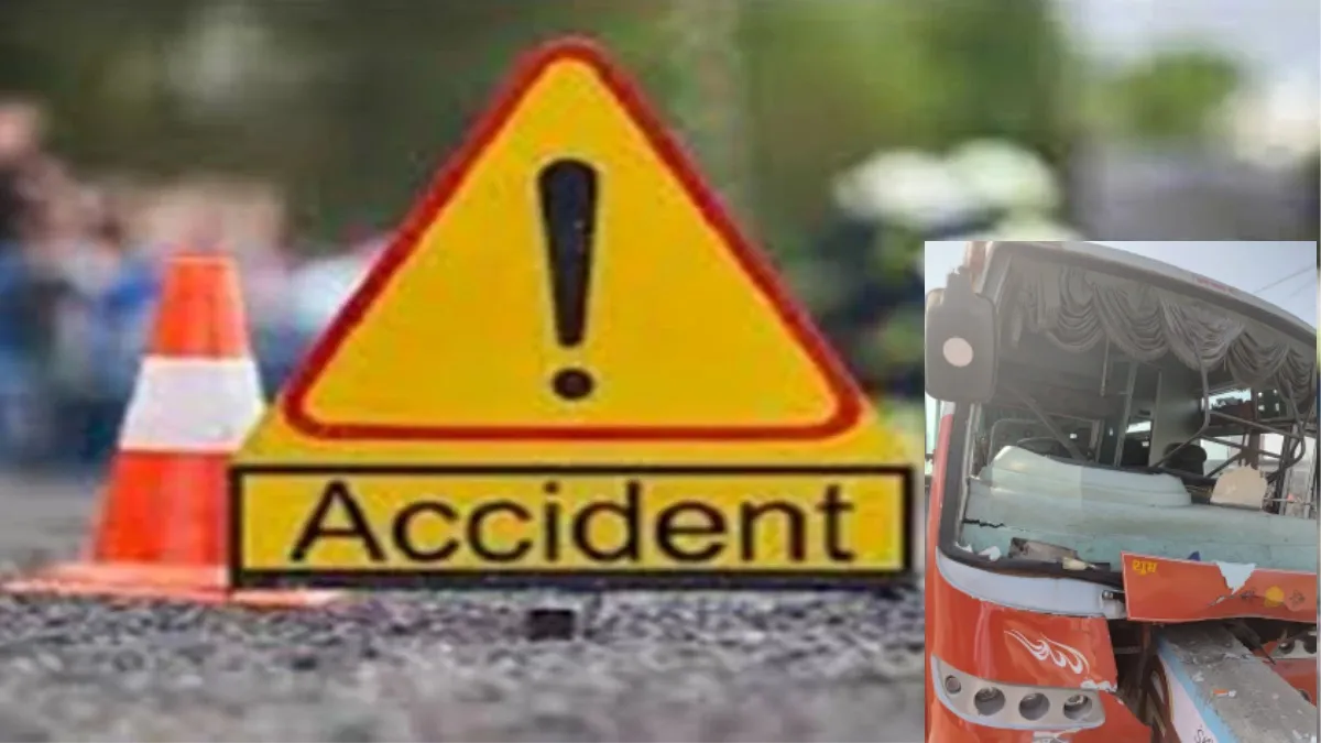 सीहोर में सड़क हादसे में क्षतिग्रस्त बस (इनसेट में)