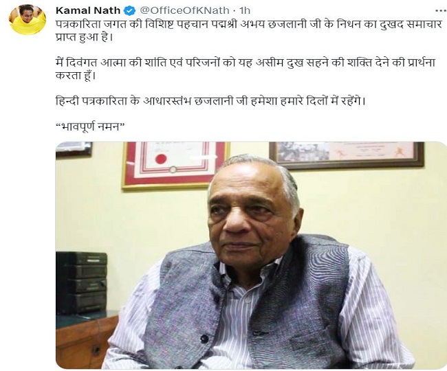 Indore News: वरिष्ठ पत्रकार पद्मश्री अभय छजलानी का लंबी बीमारी के बाद निधन, 88 साल की उम्र में ली अंतिम सांस