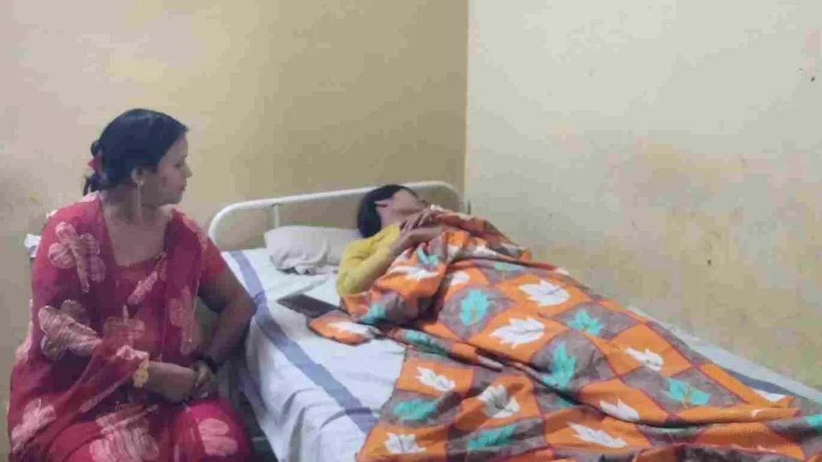 धार के जिला अस्पताल में भर्ती पीड़ित महिला।