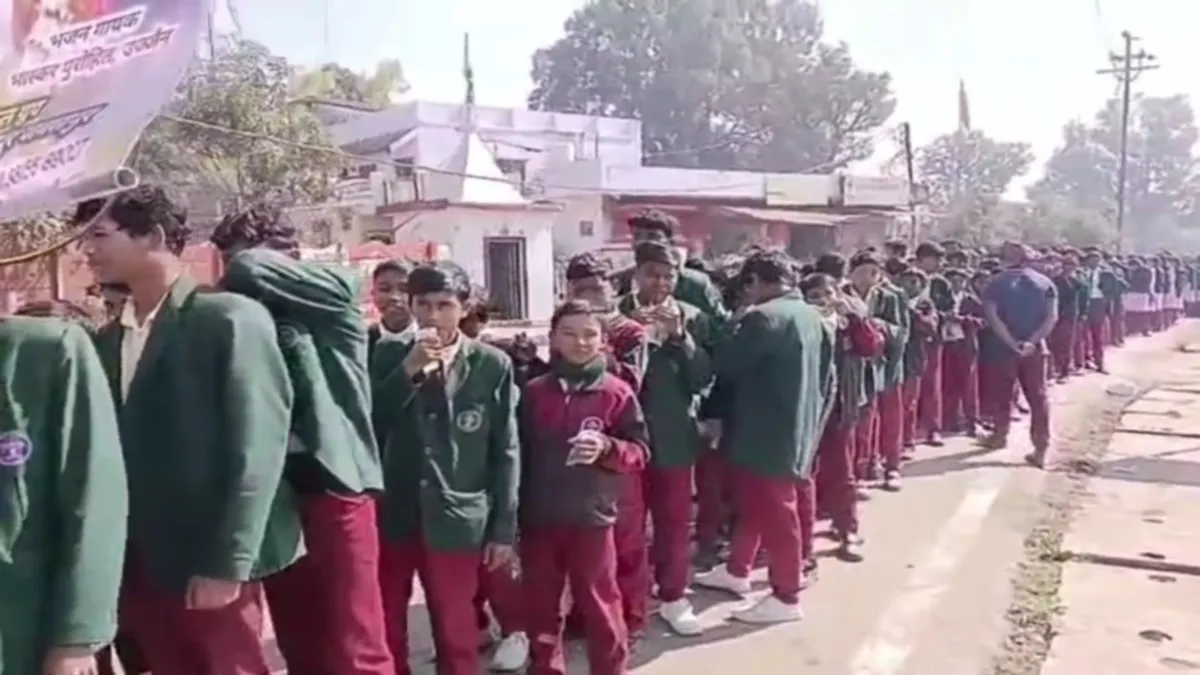 कलेक्टर से मिलने पैदल निकले छात्र-छात्राएं।