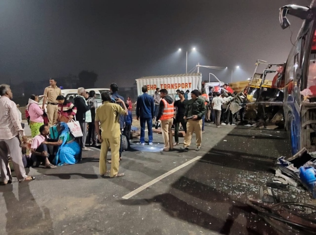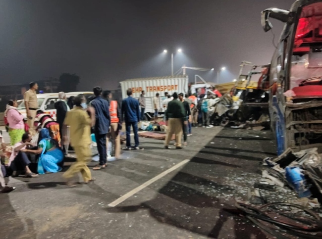 शाहपुर पुलिस थाने के एक अधिकारी ने पीटीआई-भाषा को बताया कि इसके परिणामस्वरूप वाहन सड़क विभाजक से टकरा गया, लेन से बाहर चला गया और विपरीत दिशा से आ रही एक निजी लक्जरी बस, दो कारों और एक टेम्पो से टकरा गया।