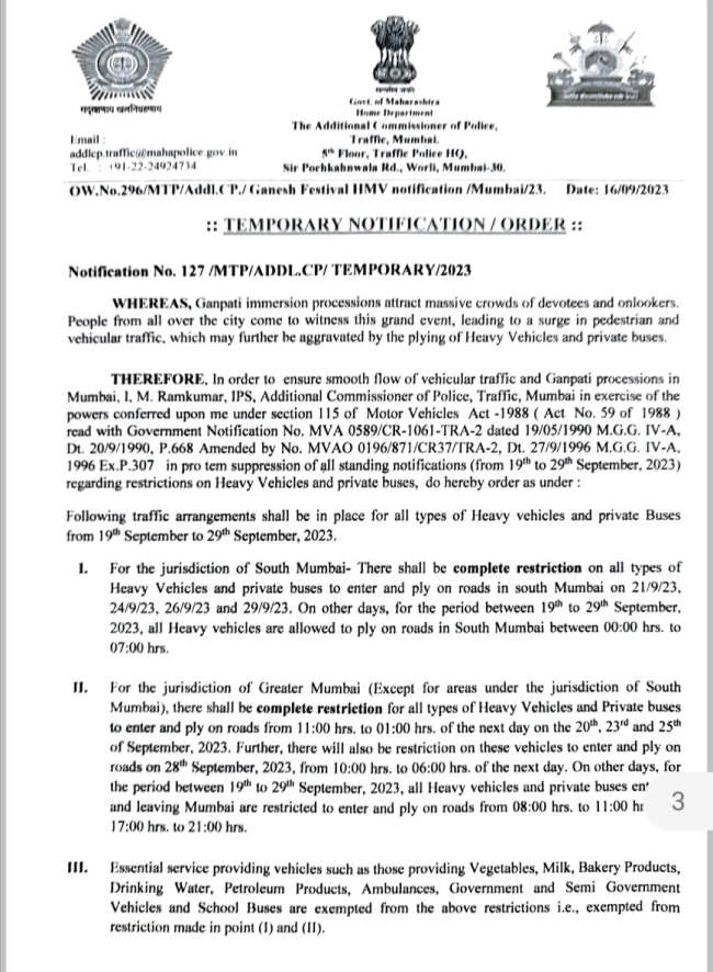 Ganesh Chaturthi 2023: सावधान मुंबईवासियों! भारी वाहन-निजी बसों पर प्रतिबंध, Traffic Advisory जारी