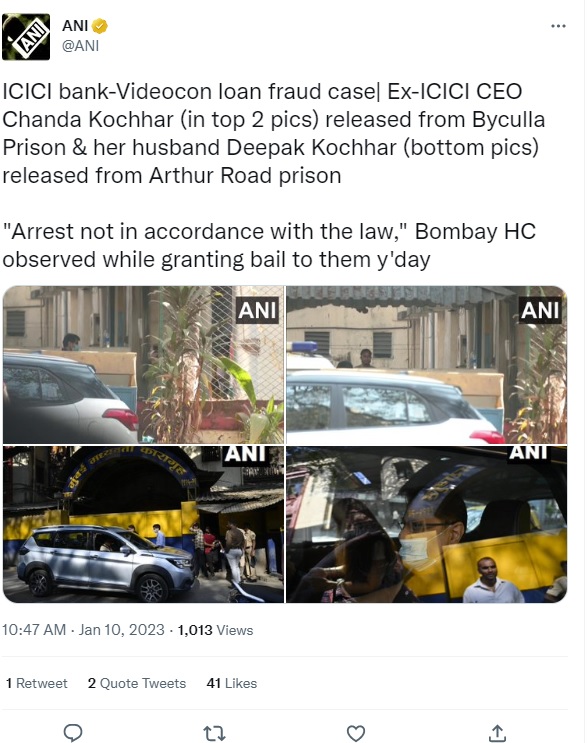 अदालत ने पाया कि कोचर दंपति की गिरफ्तारी 'कानून के अनुसार नहीं' हुई थी और इसलिए, वह उन्हें न्यायिक हिरासत से 1 लाख रुपये की नकद जमानत पर रिहा करने की अनुमति दी थी। बता दें कि वीडियोकॉन-आईसीआईसीआई ऋण घोटाला मामले में पिछले साल 23 दिसंबर को दंपति को गिरफ्तार करने वाली केंद्रीय जांच ब्यूरो ने उनकी रिहाई का विरोध किया था।