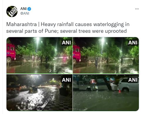 पुणे में सोमवार की रात जमकर बारिश हुई जिसकी वजह से सड़कों पर जल सैलाब उमड़ आया। इस दौरान हवा भी काफी तेज चल रही थी। जिसकी वजह से सड़कों के किनारे लगे पेड़ उखड़ गए। शिवाजी नगर इलाके में भी 81 मिमी बारिश दर्ज हुई है। यहां के सिंहगढ़ रोड, एनआईबीएम, बीटी कावड़े रोड, हडपसर, मार्केट यार्ड और कटराज जैसे कई क्षेत्रों में जल जमाव से लोगों की परेशानी बढ़ गई है।
