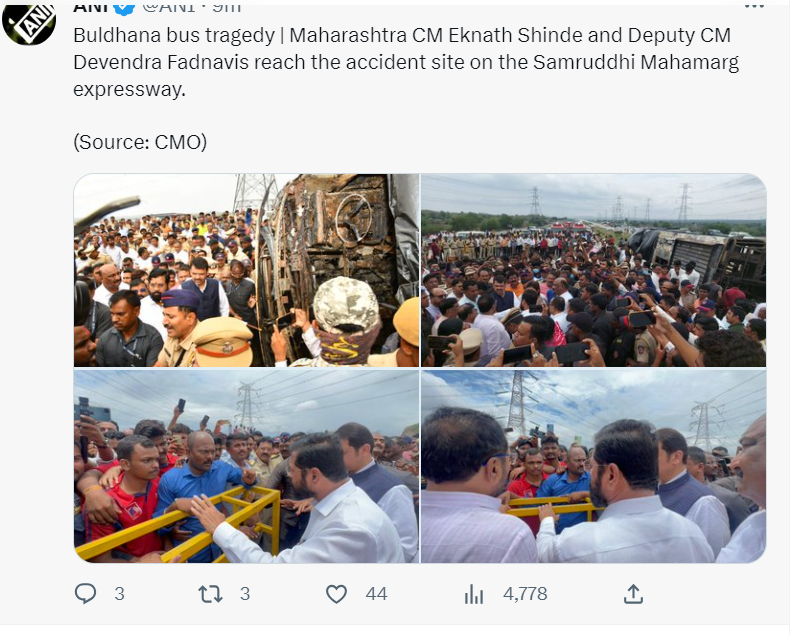 उल्लेखनीय है कि आज तड़के सुबह समृद्धि महामार्ग एक्सप्रेस-वे पर बुलढाणा में पुणे जा रही एक बस में आग लगने से तीन बच्चों सहित कुल 25 लोगों की मौत हो गई, जबकि आठ लोग घायल हो गए। 33 लोगों को लेकर बस ने यवतमाल से अपनी यात्रा शुरू की थी।