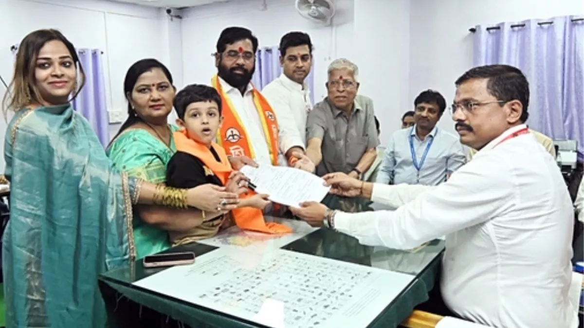 (अपना नामांकन दाखिल करते हुए एकनाथ शिंदे।)