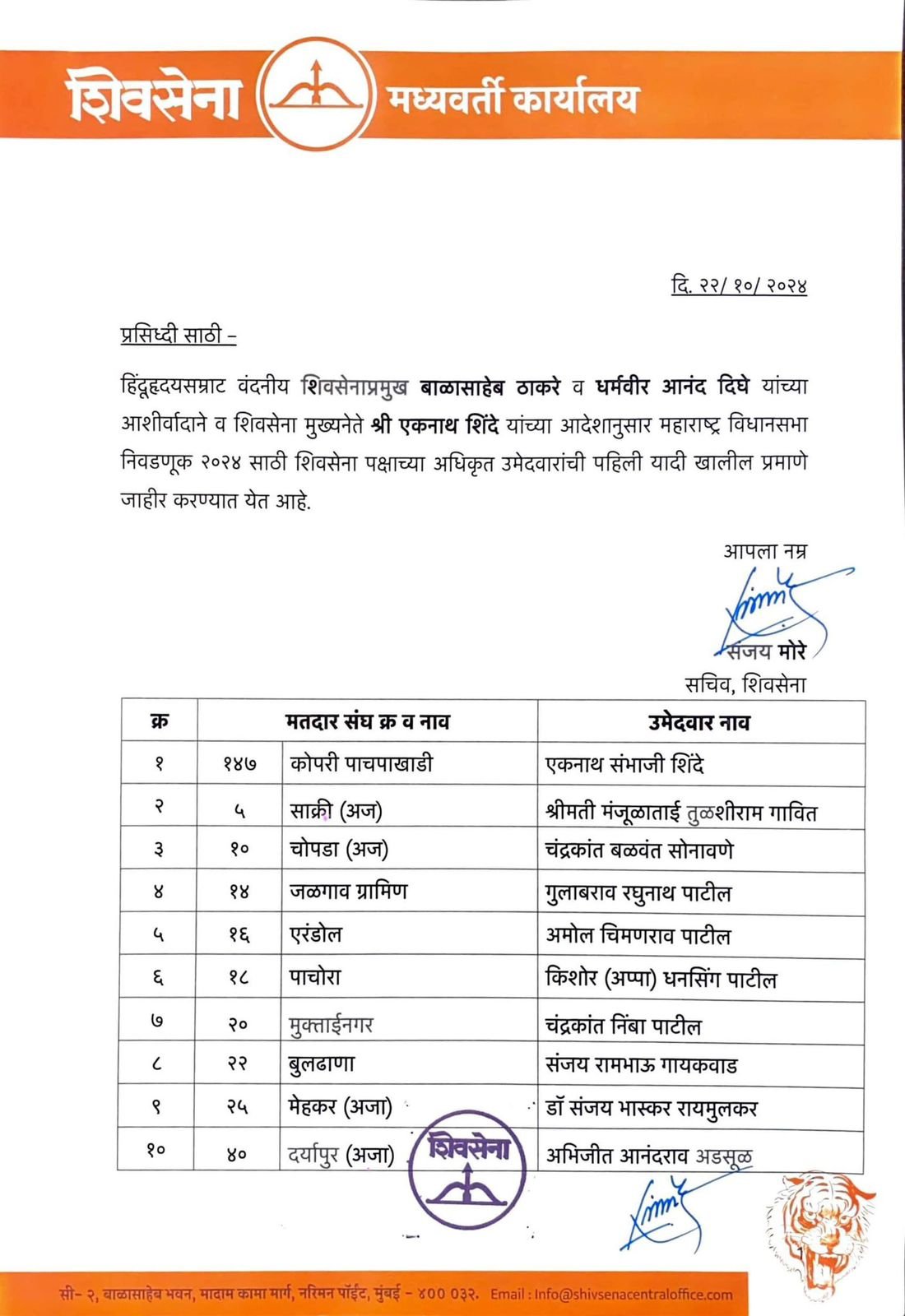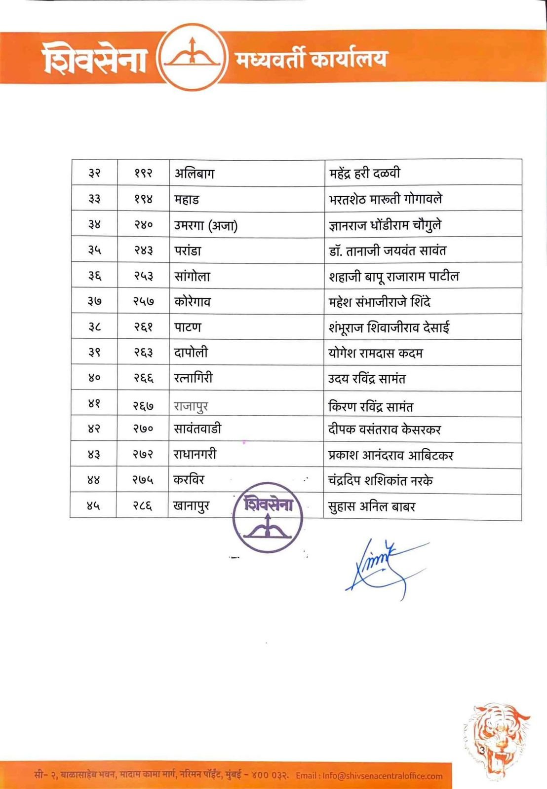 Shiv Sena releases a list of 45 candidates for the upcoming #MaharashtraAssemblyElections2024