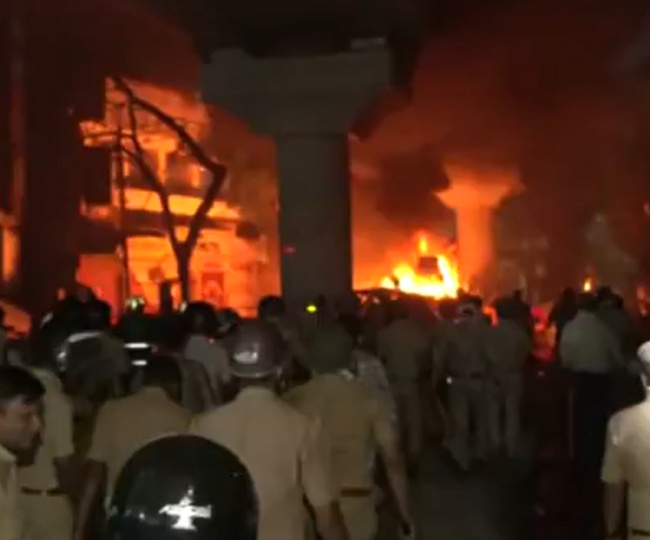 #WATCH | Maharashtra: Explosions heard on vehicles that have been torched in Mahal area of Nagpur; tensions have broken out here following a dispute between two groups. pic.twitter.com/rssI72v8od
