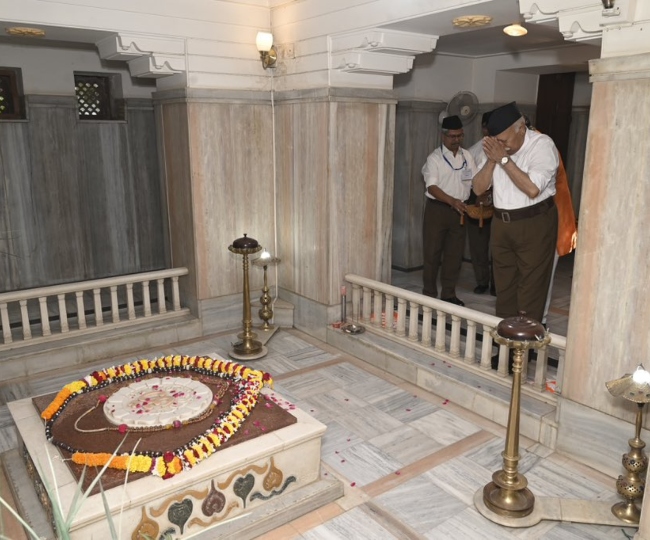 इस मौके पर आरएसएस प्रमुख मोहन भागवत ने संगठन के संस्थापक केबी हेडगेवार को श्रद्धांजलि दी। साथ ही, उन्होंने 'विजयादशमी उत्सव' के मौके पर शस्त्र पूजा की।(1).jpg)