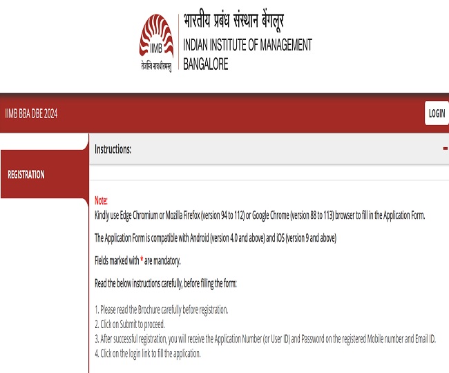 जो भी अभ्यर्थी इस पाठ्यक्रम में प्रवेश चाहते हैं वे ऑनलाइन माध्यम से आवेदन कर सकते हैं। आवेदन के लिए आपको सबसे पहले आधिकारिक पोर्टल dbe.iimb.ac.in पर जाकर Apply लिंक पर क्लिक करना होगा। इसके बाद आपको पहली स्टेप में Register Now लिंक पर क्लिक करके पंजीकरण करना होगा। इसके बाद दूसरी स्टेप में स्टूडेंट्स को Pay Now लिंक पर क्लिक करके फीस जमा करनी होगी। अंत में तीसरे स्टेप में अभ्यर्थियों को Application form लिंक पर क्लिक करके अन्य डिटेल भरकर आवेदन प्रक्रिया पूर्ण करनी होगी।