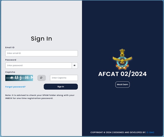 ऐसे में जिन उम्मीदवारों ने IAF के AFCAT 02/2024 के लिए पंजीकरण किया है, प्रवेश परीक्षा में सम्मिलित होने के लिए अपना प्रवेश पत्र डाउनलोड करने हेतु आधिकारिक पोर्टल, afcat.cdac.in पर विजिट करें। फिर उम्मीदवार होम पेज पर दिए गए लिंक या नीचे दिए डायरेक्ट लिंक से डाउनलोड पेज पर जा सकते हैं। इस पेज पर उम्मीदवारों को अपनी पंजीकृत ईमेल आइडी और पासवर्ड की डिटेल से लॉग-इन करना होगा। लॉग-इन के बाद उम्मीदवार अपना प्रवेश पत्र (AFCAT Admit Card 2024) डाउनलोड कर सकेंगे।