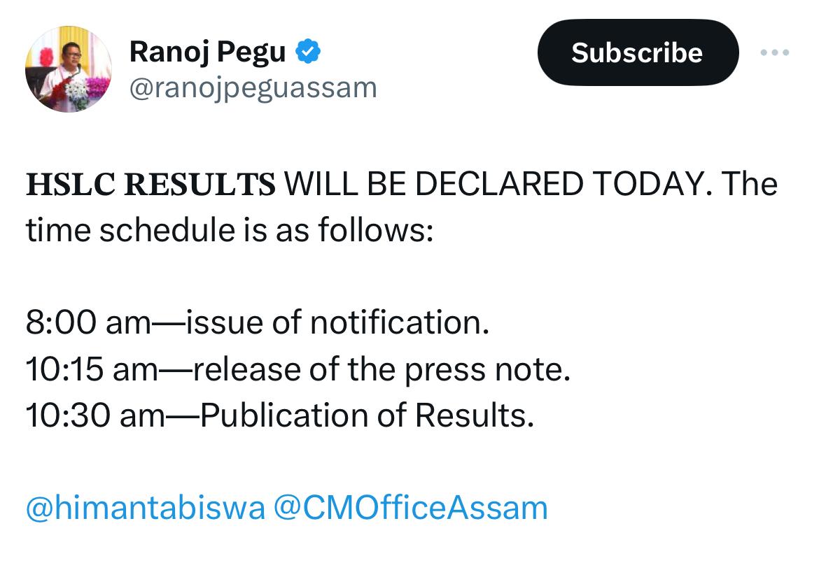 स्टेप 2: अब होमपेज पर "असम HSLC रिज़ल्ट 2025" वाले लिंक पर क्लिक करें।