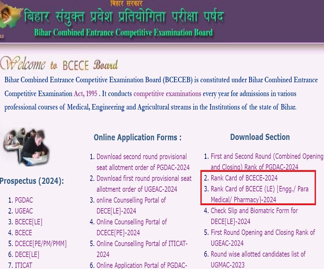 - Rank Card of BCECE (LE) [Engg./ Para Medical/ Pharmacy] -2024)- डायरेक्ट लिंक
