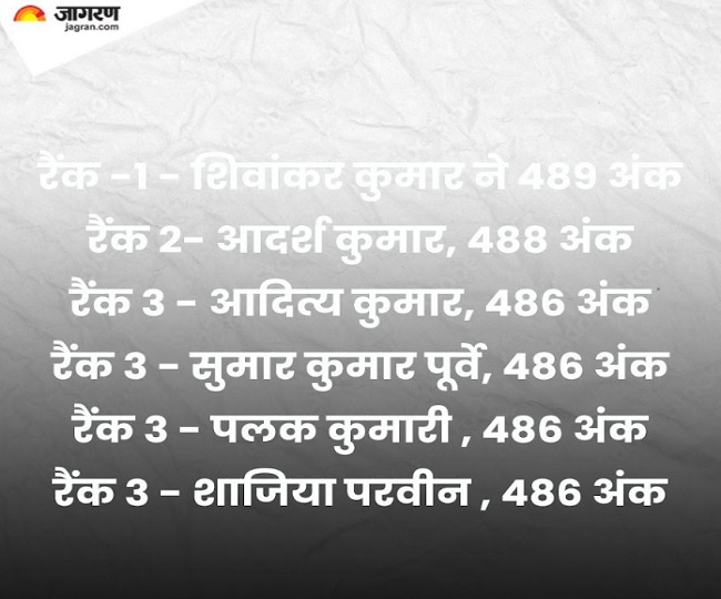 टाप 10 में शामिल 26 परीक्षार्थियों में दो जमुई के सिमुलतला आवासीय विद्यालय के हैं। टाप 10 में 11 लड़कियां शामिल हैं।