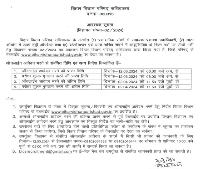 Bihar Vidhan Parishad Recruitment 2024: कहां और कैसे करें आवेदन?