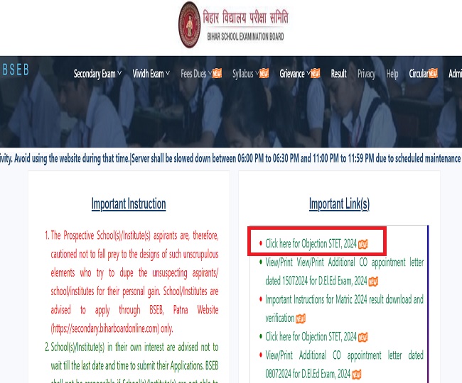 - वेबसाइट के होम पेज पर आपको Click here for Objection STET, 2024 लिंक पर क्लिक करना होगा।