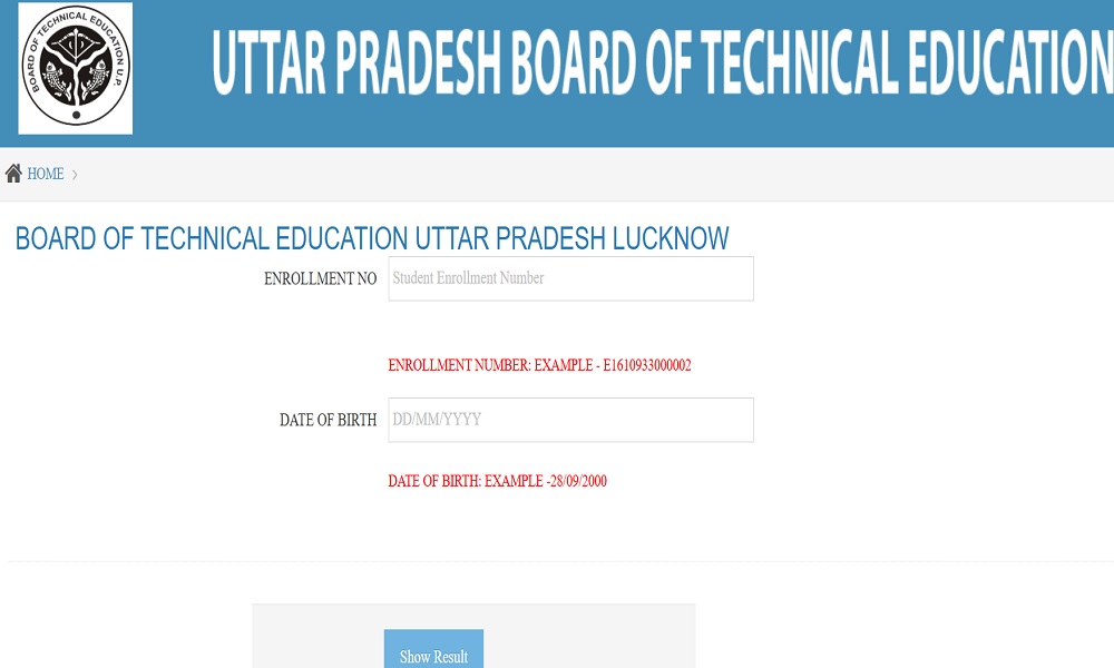 - अब आपको एनरोलमेंट नंबर, डेट ऑफ बर्थ दर्ज करने के बाद शो रिजल्ट बटन पर क्लिक करना है।