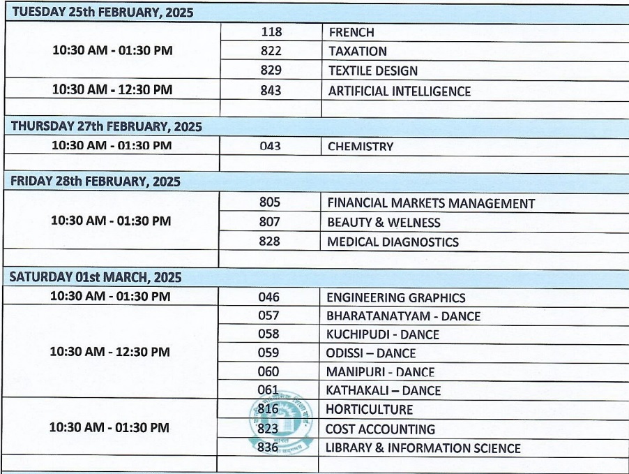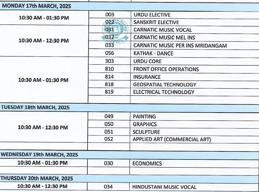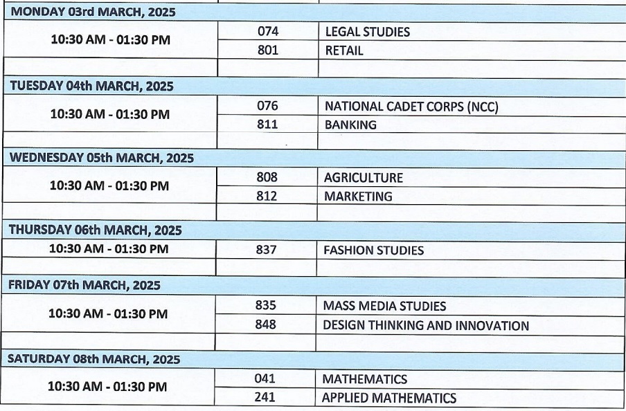किस विषय का पेपर किस डेट में होगा आयोजित