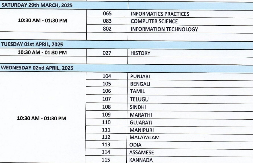CBSE 12 Date Sheet 2025 PDF डाउनलोड करने के लिए यहां क्लिक करें।