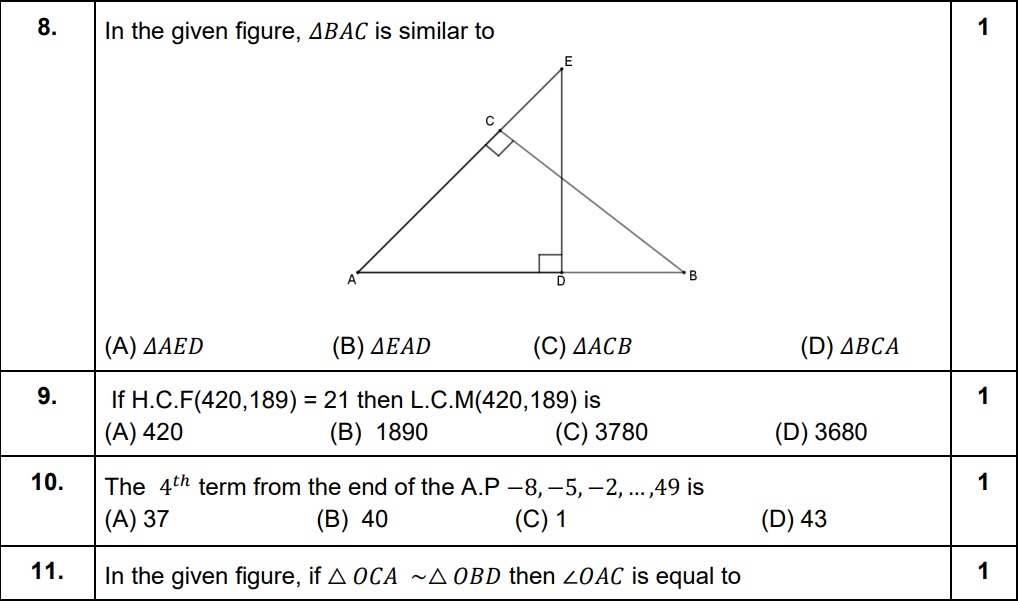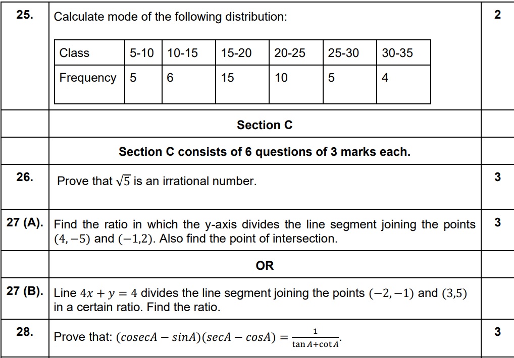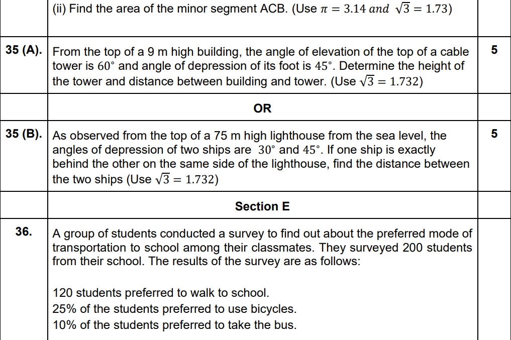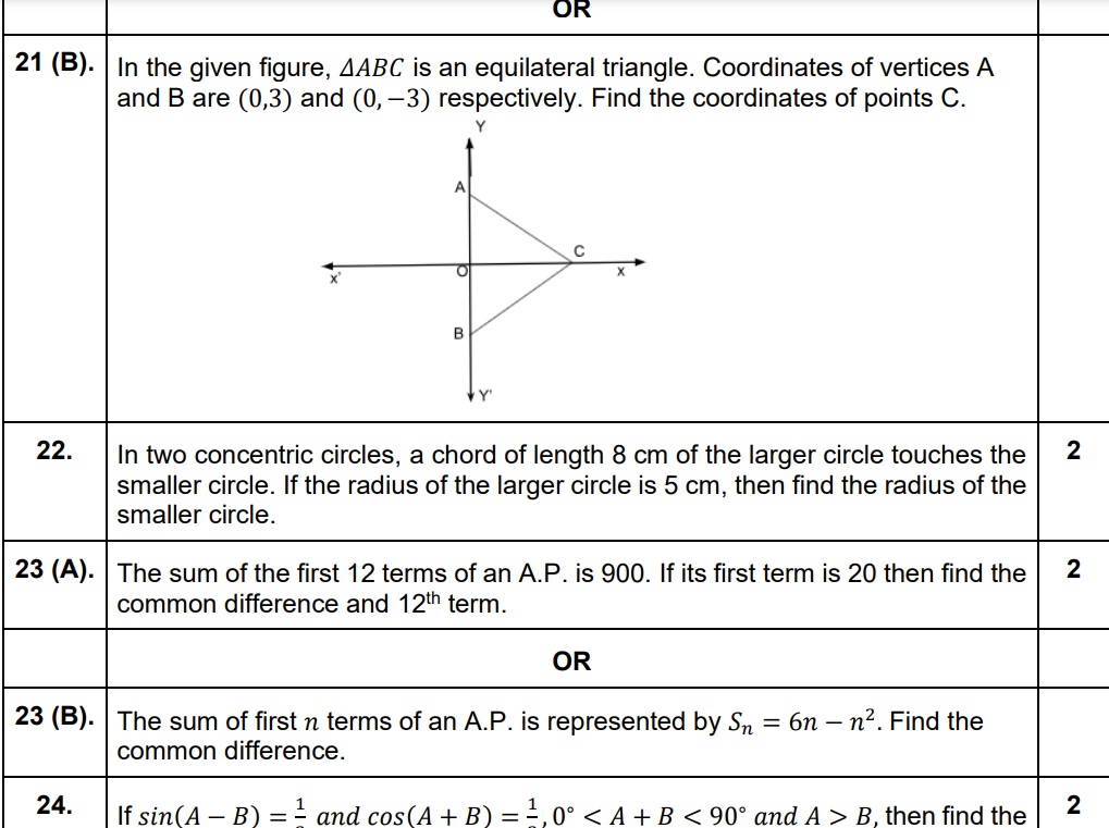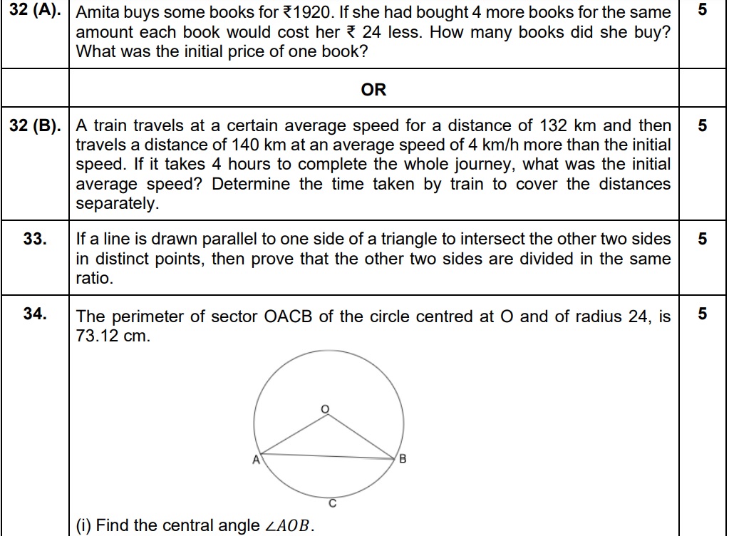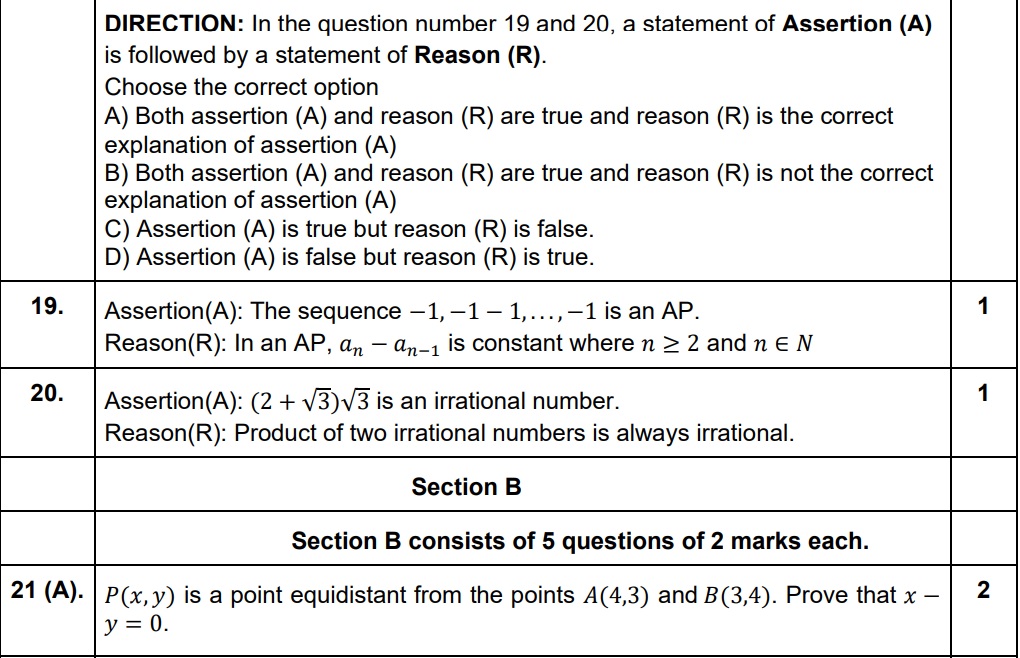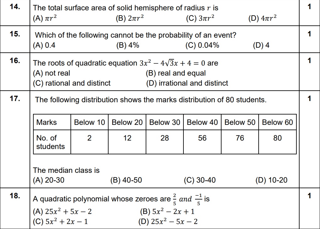 सीबीएसई की ओर से कक्षा 10 गणित पेपर सैंपल पेपर