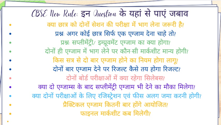 नए नियम के मुताबिक स्टूडेंट्स के मन में कई सवाल आ रहे हैं। ऐसे में आप इस आर्टिकल से CBSE New Rule के सभी जरूरी सवालों का उत्तर जान सकते हैं-