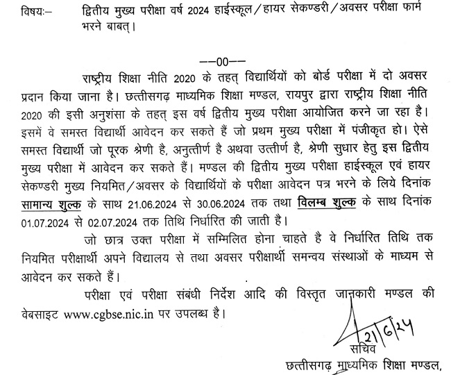 CGBSE 10th 12th Board Exam 2024: छत्तीसगढ़ बोर्ड ने द्वितीय मुख्य बोर्ड परीक्षाओं के लिए टाइम टेबल किया जारी, इन डेट्स में किया जा सकता है आवेदन