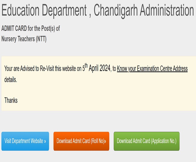 Chandigarh NTT Admit Card 2024: एग्जामिनेशन सेंटर के लिए 5 अप्रैल को प्राप्त होगी जानकारी