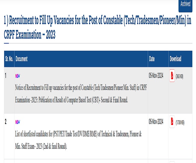 CRPF Tradesman Result 2024: सीआरपीएफ कॉन्स्टेबल ट्रेड्समैन भर्ती सीबीटी-2 रिजल्ट घोषित, यहां से डाउनलोड करें PDF