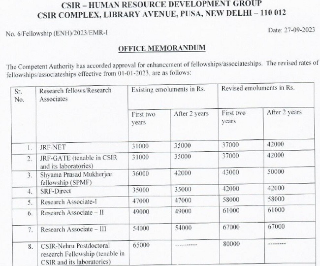 CSIR Fellowship 2023: सीएसआइआर ने JRF, SRF और RA को बढ़ाई गई फेलोशिप के लिए अधिसूचना जारी की, 1 जनवरी से लागू
