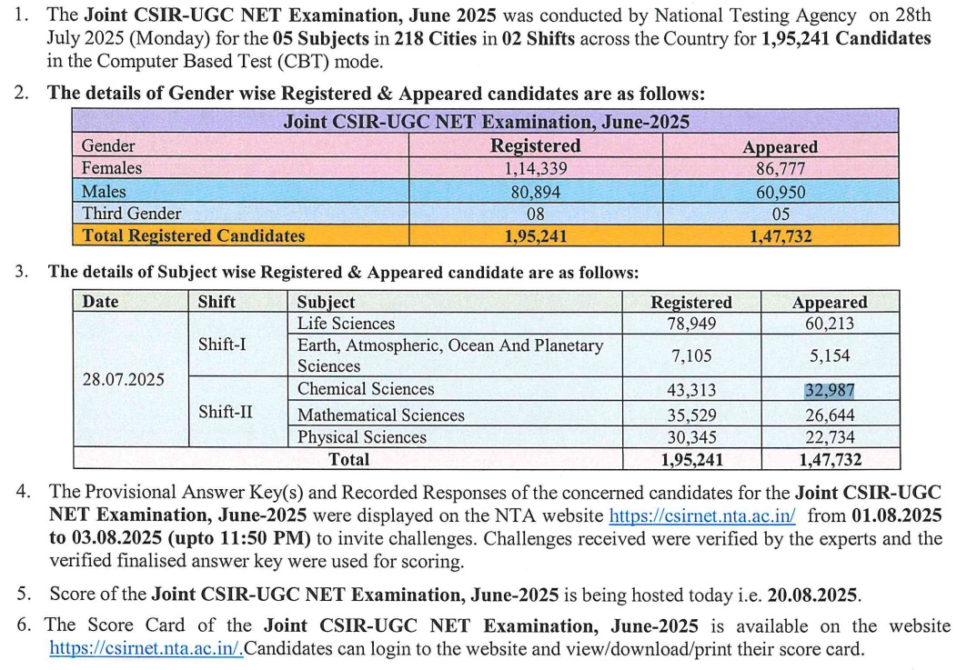 यह भी पढ़ें - CSIR UGC NET Result 2025: सीएसआईआर नेट रिजल्ट जारी, Score Card ऐसे करें डाउनलोड