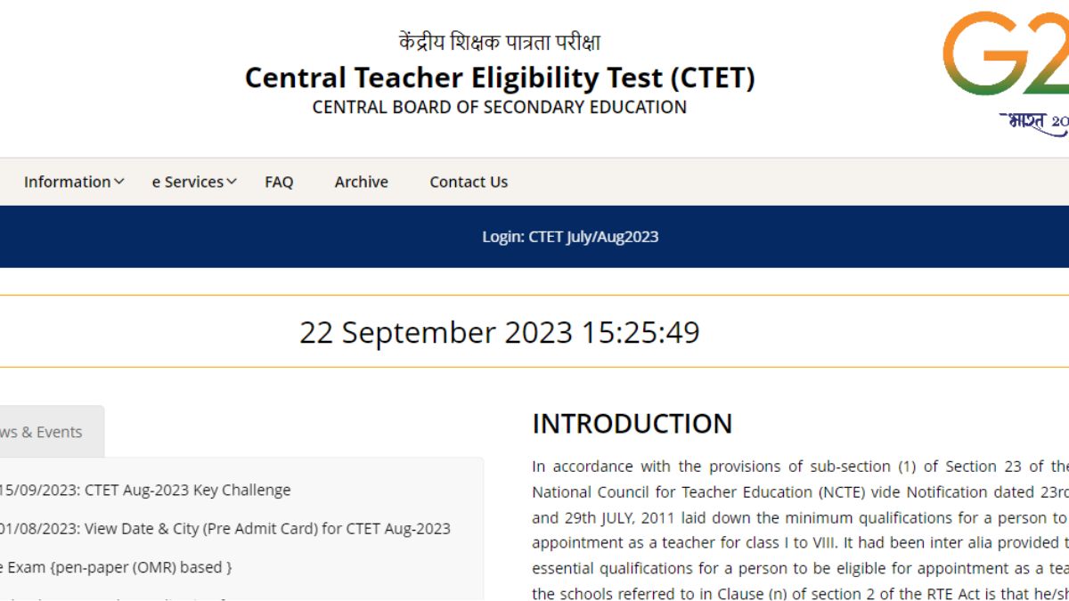 CTET 2023 Result केंद्रीय शिक्षक पात्रता परीक्षा का आयोजन 20 अगस्त 2023 को देश भर के विभिन्न केंद्रों पर किया था। इसके बाद परीक्षा के लिए प्रोविजनल आंसर-की 15 सितंबर 2023 को जारी की गई थी। इसके बाद कैंडिडेट्स को ऑब्जेक्शन उठाने के लिए 18 सितंबर 2023 तक का समय दिया गया था। अब यह समय सीमा भी समाप्त हो चुकी है।